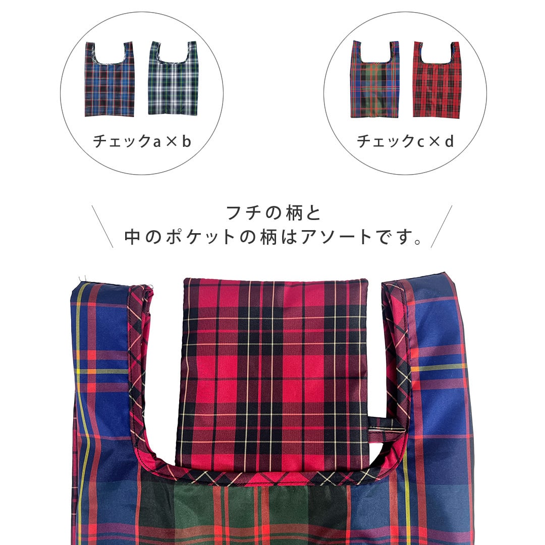 撥水ポケッタブルバッグ 57010083 maison blanche メゾンブランシュ(サブバッグ エコバッグ 手提げ 日本製 北欧 チェック柄 雑貨 レディース 雨傘 生地 かわいい 可愛い おしゃれ オシャレ ギフト 誕生日プレゼント プレゼント)