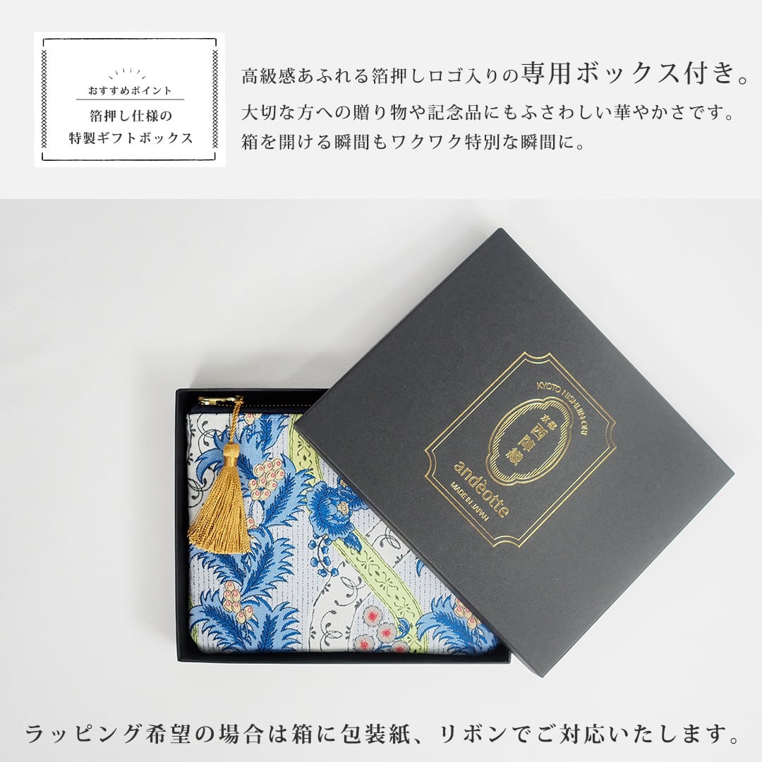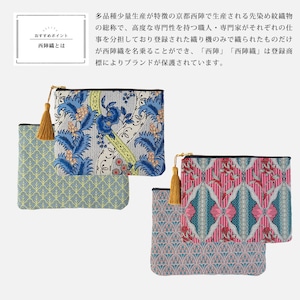 京都 西陣織フラットポーチ 総柄 20080 andèotte アンデオッテ(ポーチ 日本製 整理整頓 pouch 小物入れ 北欧 雑貨 レディース かわいい 可愛い おしゃれ オシャレ ギフト 誕生日プレゼント プレゼント)