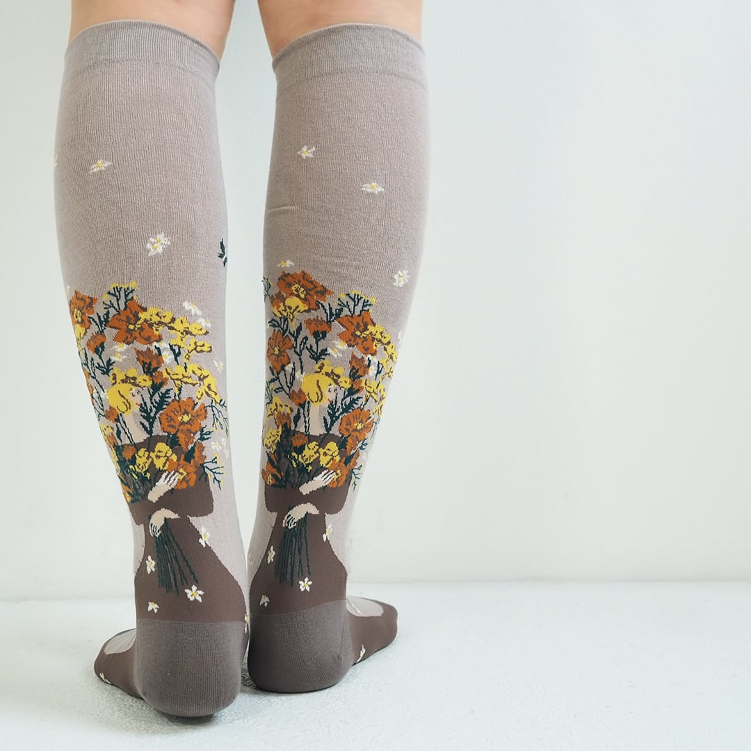 編み目の細かいハイゲージソックスは、繊細な柄を表現できます。