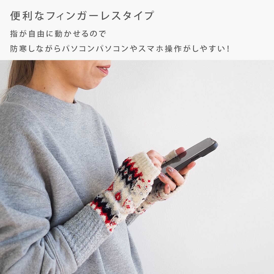 メール便OK アームウォーマー 57140013(指なし 手袋 ハンドウォーマー ニット 防寒 レディース オフィス 北欧 かわいい おしゃれ ギフト クリスマスプレゼント プレゼント 日本製)