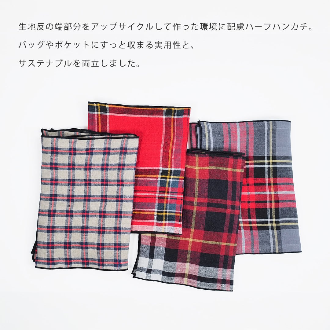 生地反の端部分をアップサイクルして作った環境に配慮したハーフハンカチ。