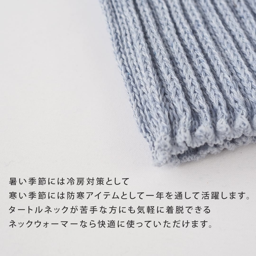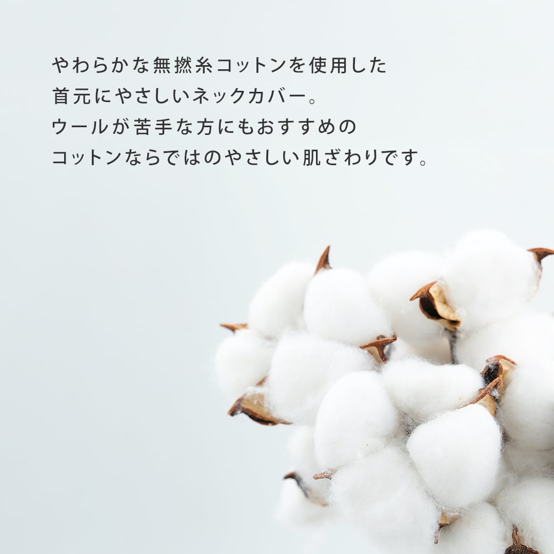 やわらかな無撚糸コットンを使用した、首元にやさしいネックカバーです。希少な編み機を使い、熟練の職人の手で一枚一枚、丁寧に編み立てています。