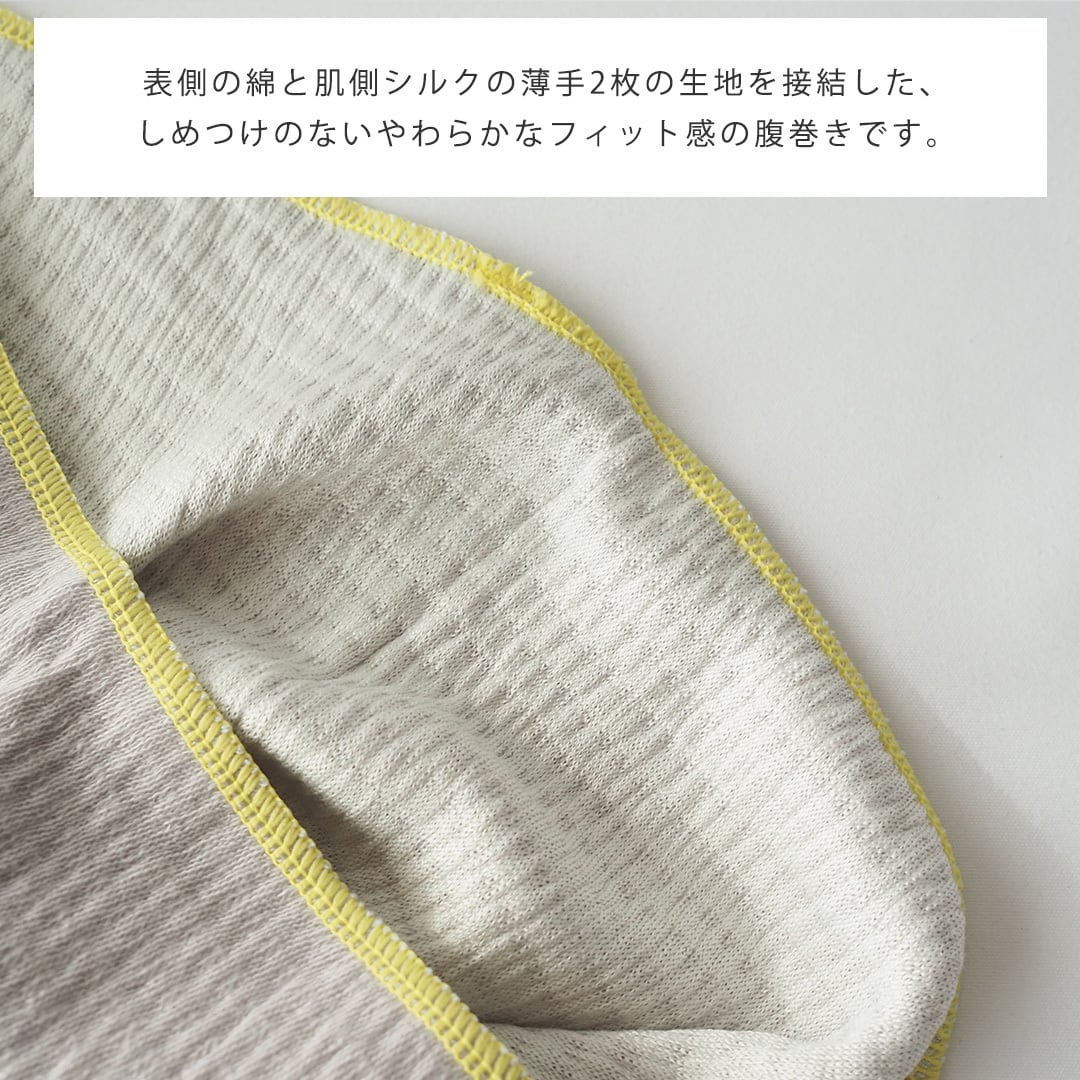 綿とシルク、2枚の生地を接結し肌綿に滑らかな肌触りの高級素材シルクを使用。