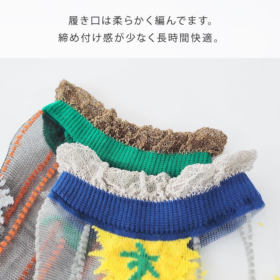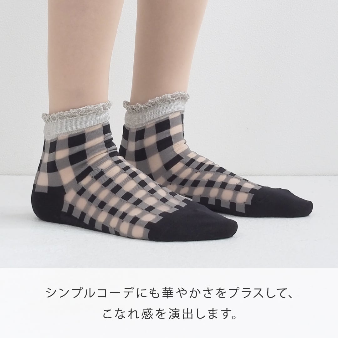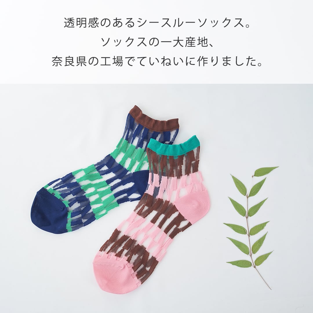 ソックスの一大産地・奈良県の工場さんで丁寧につくった透明感のあるシースルーソックス。