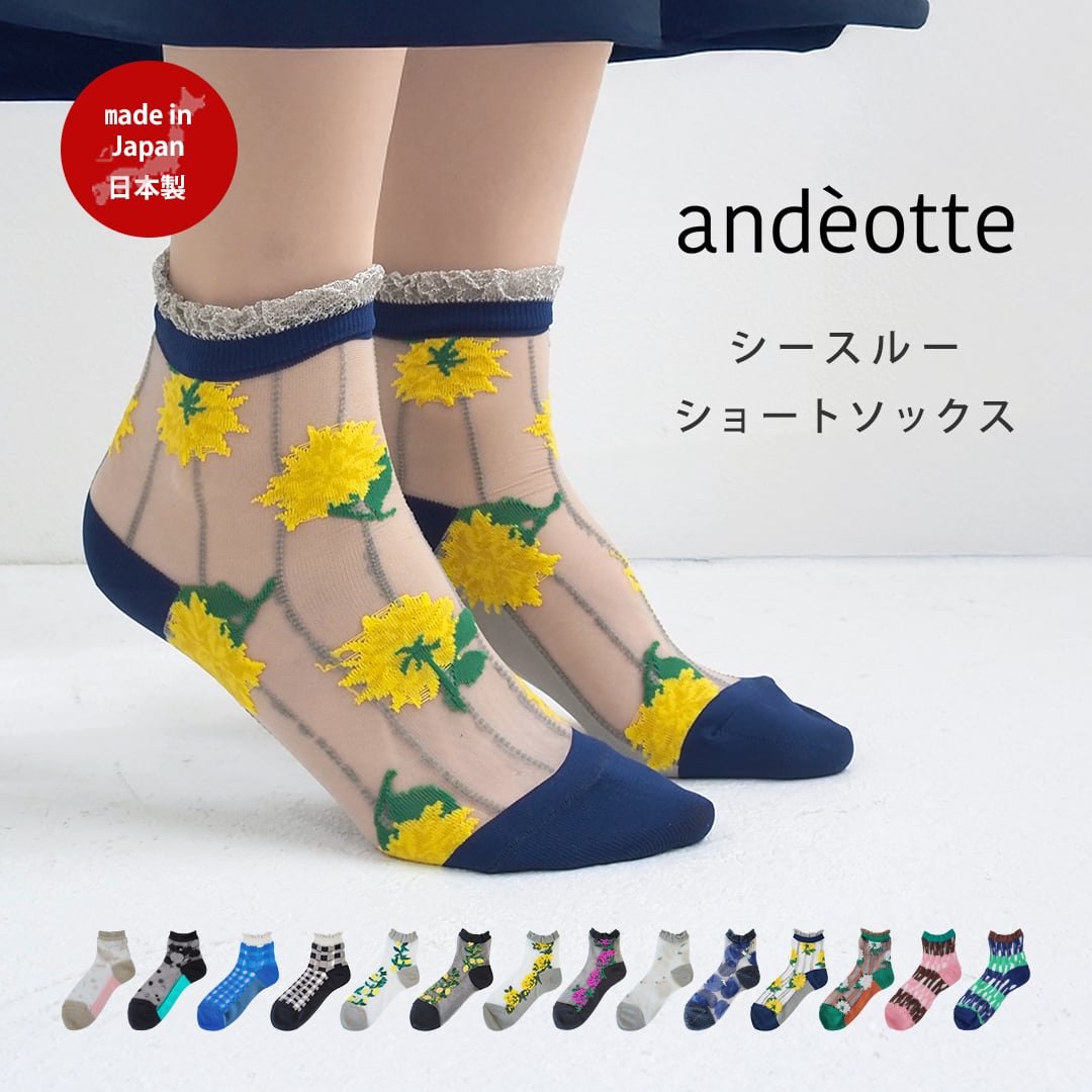 シースルー ショートソックス ショート丈 1182 andeotte アンデオッテ (日本製 レディース 靴下 デオドラント加工 防臭効果 ブランド 透け レース 花柄 おすすめ 人気 おしゃれ オシャレ ラッピング ギフト 誕生日プレゼント プチギフト 春 夏)