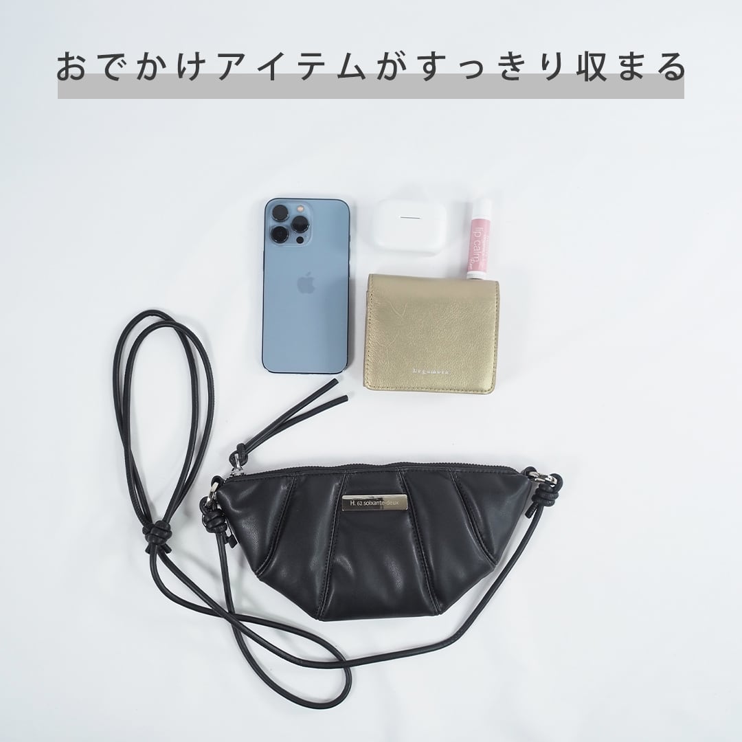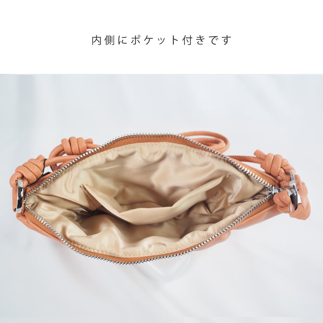 柔らかな質感と立体的なギャザーデザインが特徴のショルダーバッグ。