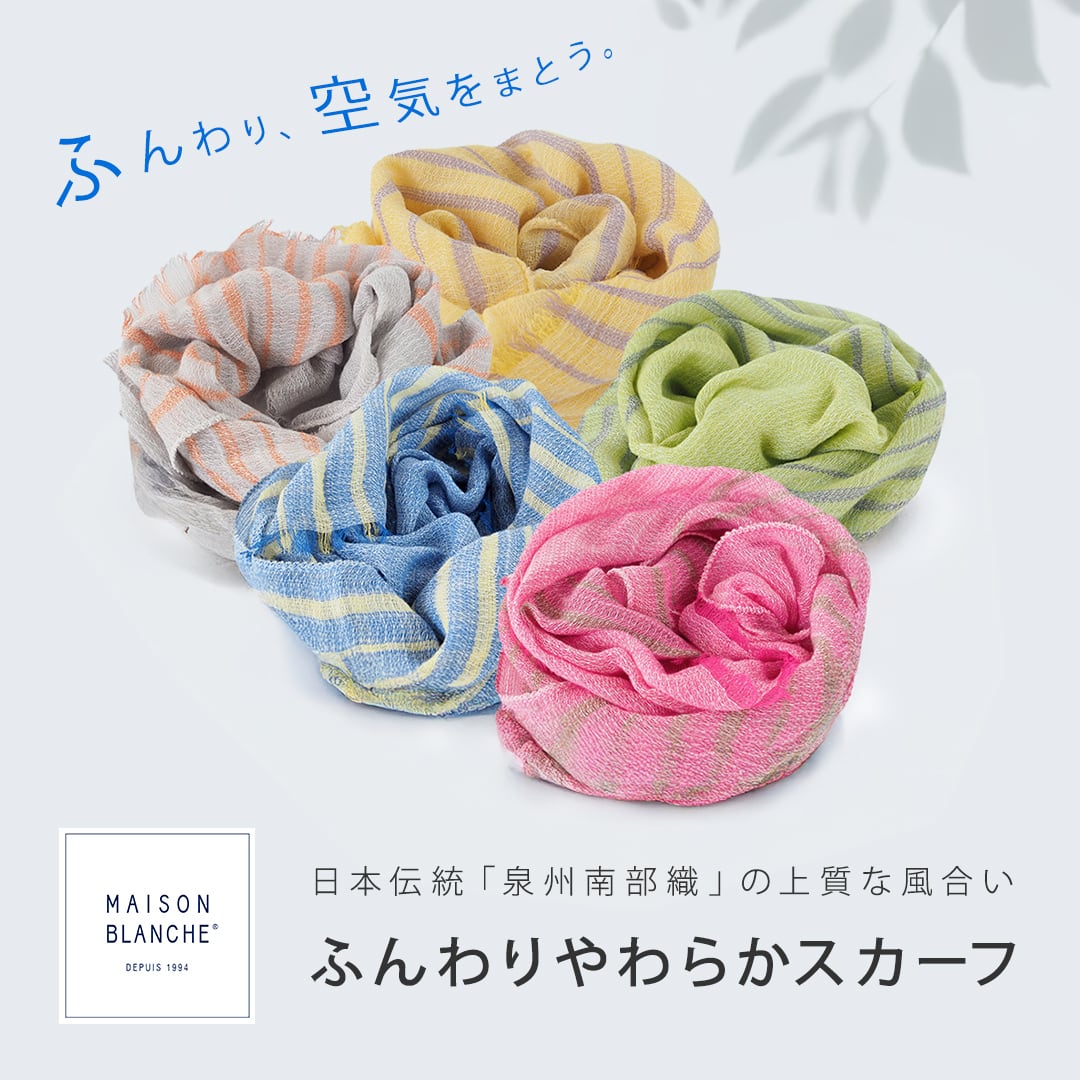 泉州南部織 ふんわりやわらかスカーフ 57040031 | maison blanche メゾンブランシュ レディース ストール 紫外線 UVカット 北欧 かわいい おしゃれ シンプル ナチュラル 無料ラッピング ギフト プレゼント 母の日 実用的 春 夏 暑さ対策 日本製 綿 コットン