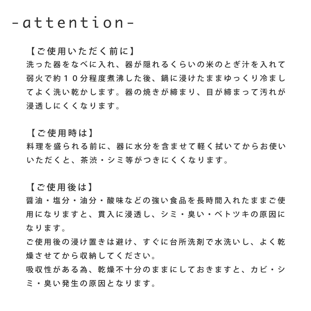 ●釉薬の特質上、土物などに見られるピンホール・釉薬だれ・色むらのあるものがございます。これらは良品でございますので不良対象外となります。予めご了承の上ご注文をお願い申し上げます。
