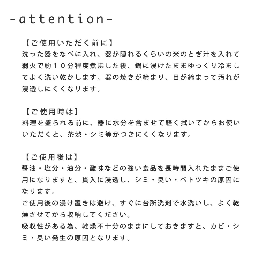 ●釉薬の特質上、土物などに見られるピンホール・釉薬だれ・色むらのあるものがございます。これらは良品でございますので不良対象外となります。予めご了承の上ご注文をお願い申し上げます。