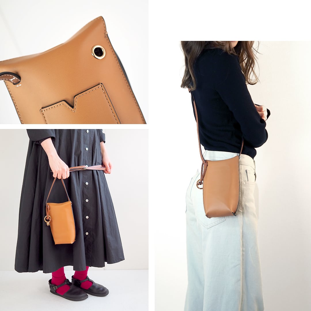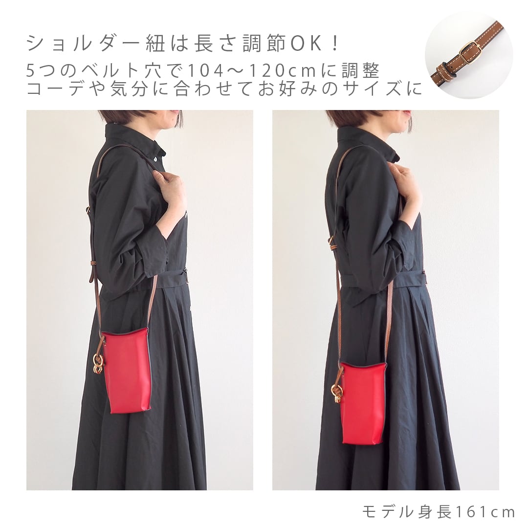 しっとりなめらかなヴィーガンレザーを使用したカジュアルからキレイめまで幅広いコーデに合わせられるスマホショルダーバッグです。