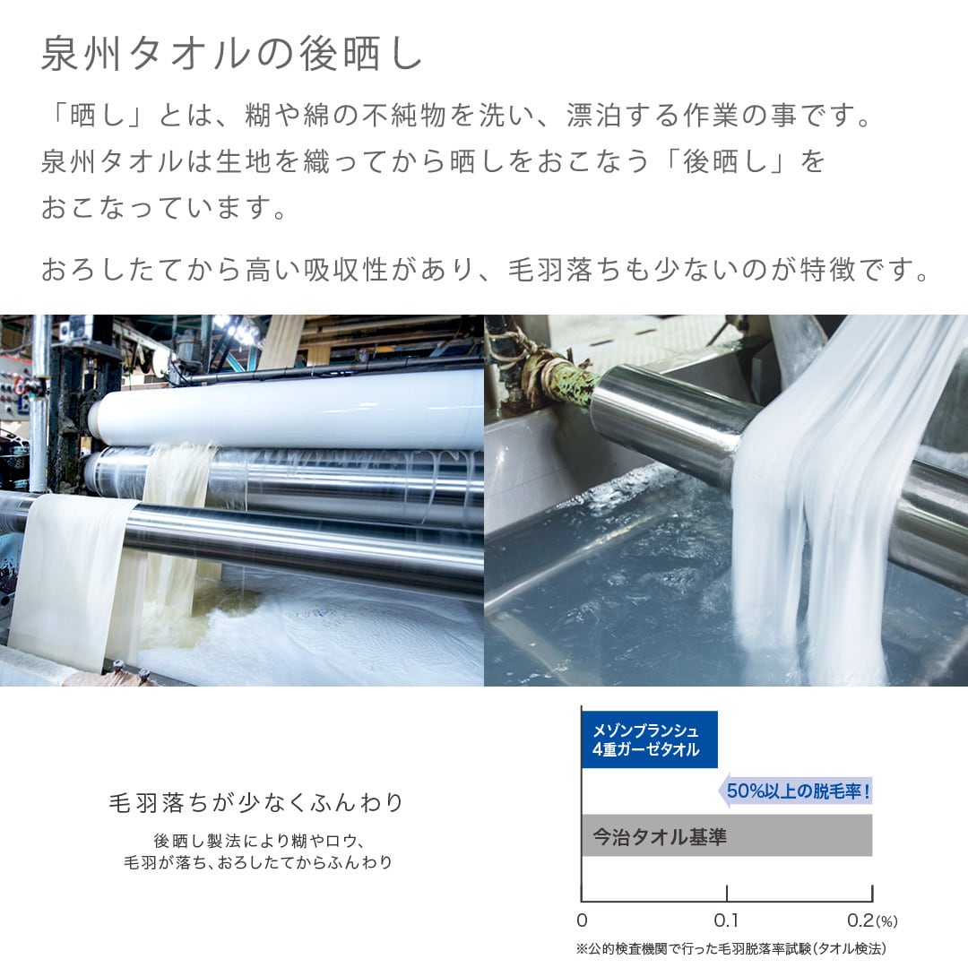 日本のタオル産業の発祥地として知られる大阪・泉州で作られたガーゼタオルです。