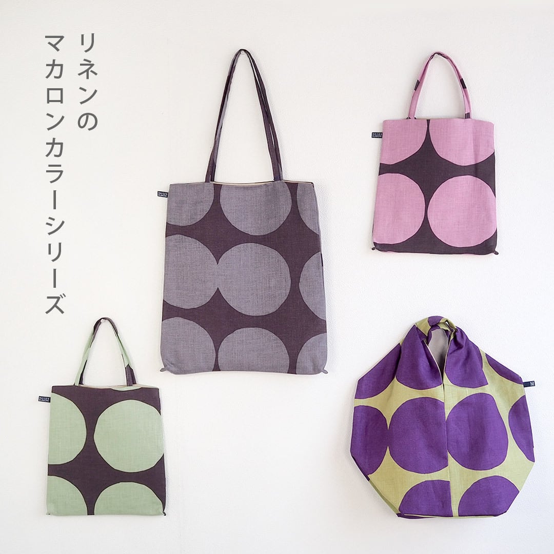 マカロンカラーがかわいいリネン素材のバッグを作りました。