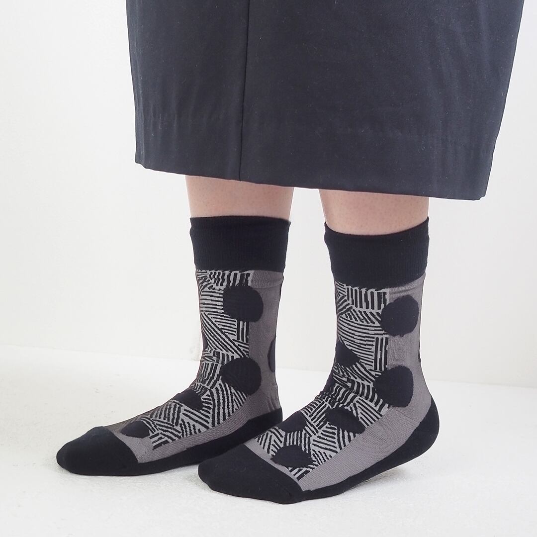 シースルーソックスはショート丈のストッキングとしても。フェミニン・フォーマルな服装にも合わせやすく、足元をおしゃれに彩ります。