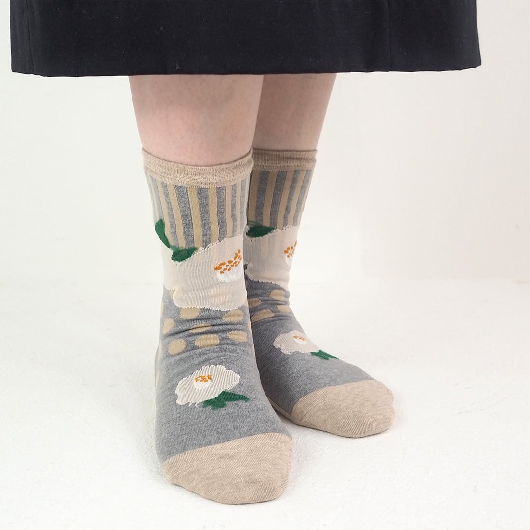 andèのソックスは日本の伝統的な色や素材、季節をモチーフに、ソックスの一大産地である奈良の工場さんで丁寧に編み上げています。