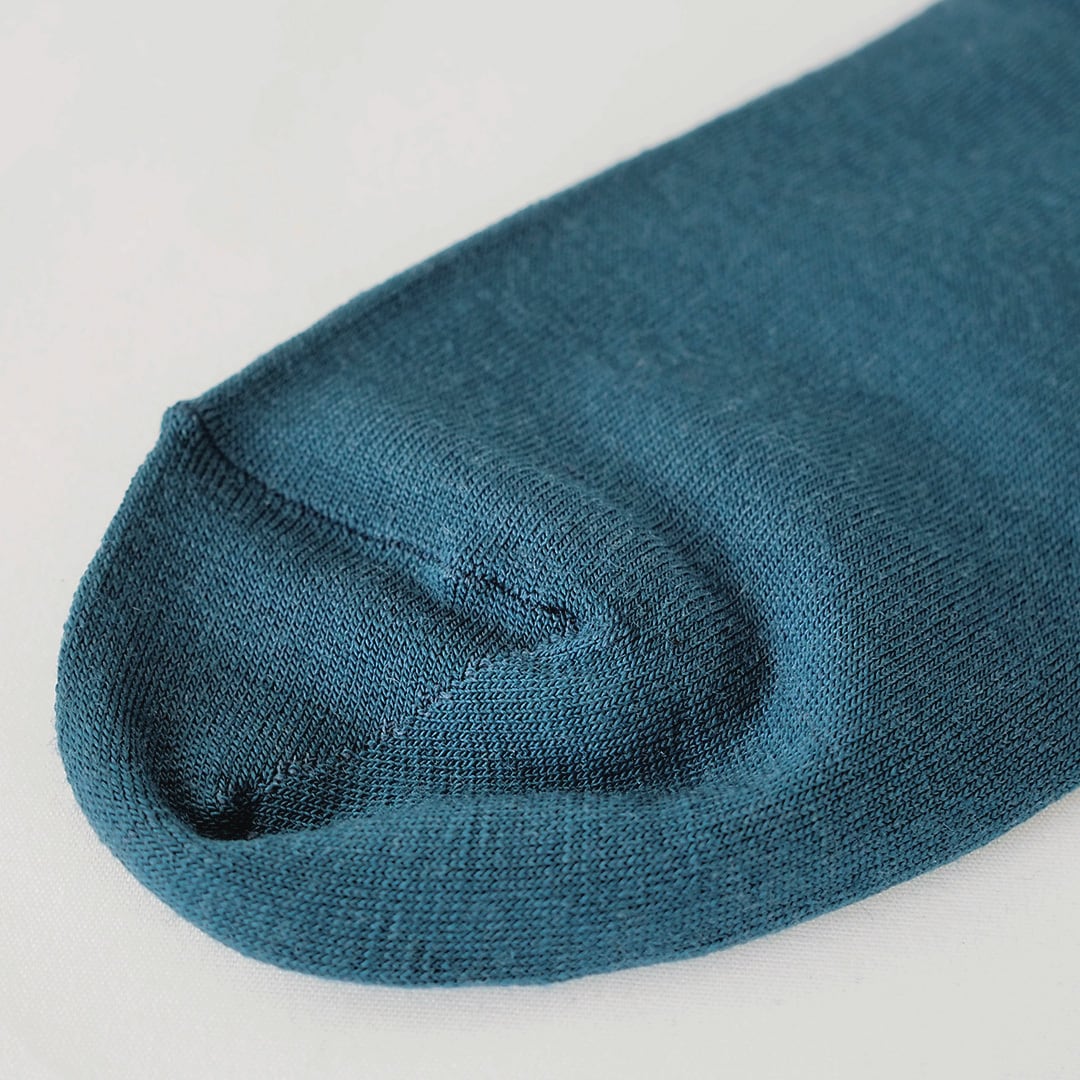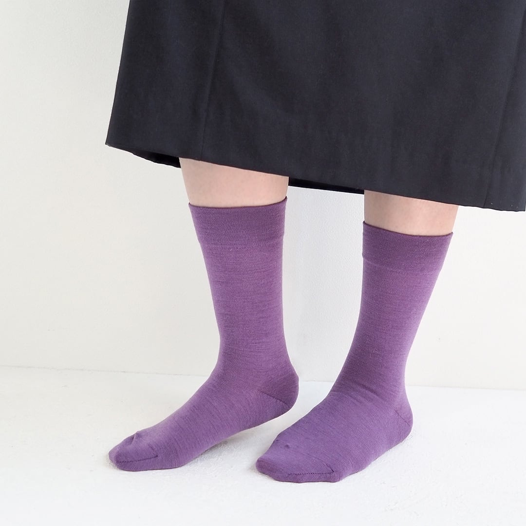 ハイゲージ機で作っているため、薄手ながらも保温性、吸・放湿性に優れたソックスです。
