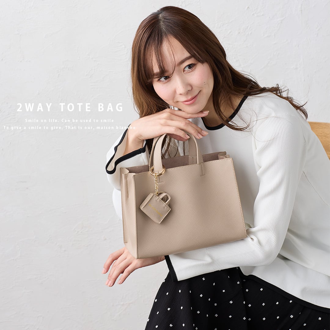 57013033 2way ショルダー トートバッグ maison blanche メゾンブランシュ | バッグ チャーム付き サブバッグ ポシェット PUレザー レディース 革 通勤 通学 小さめ プレゼント ギフト ラッピング