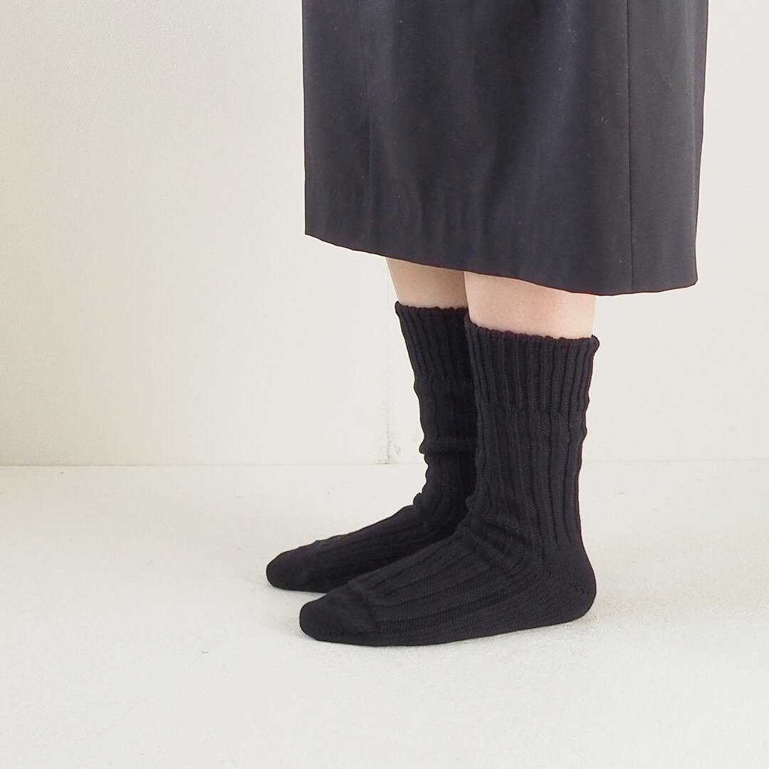 ざっくりとした編み目がカジュアルな着こなしにぴったりなローゲージリブソックスです。