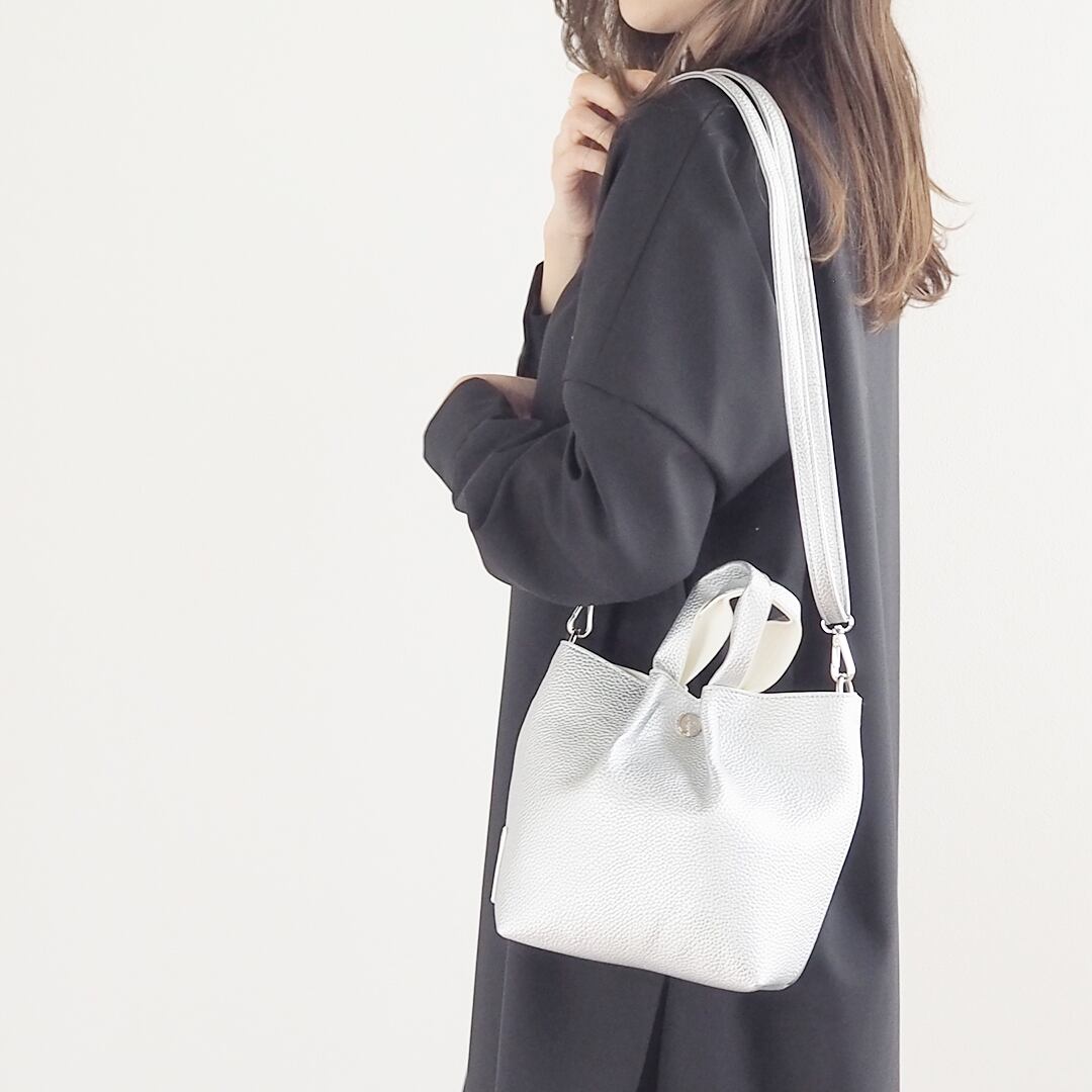 2WAY仕様なので、ショルダーバッグとしてもトートバッグとしてもお使いいただけます。取り外し可能なショルダー紐が付いているので、お好みでスタイルを変えられます。