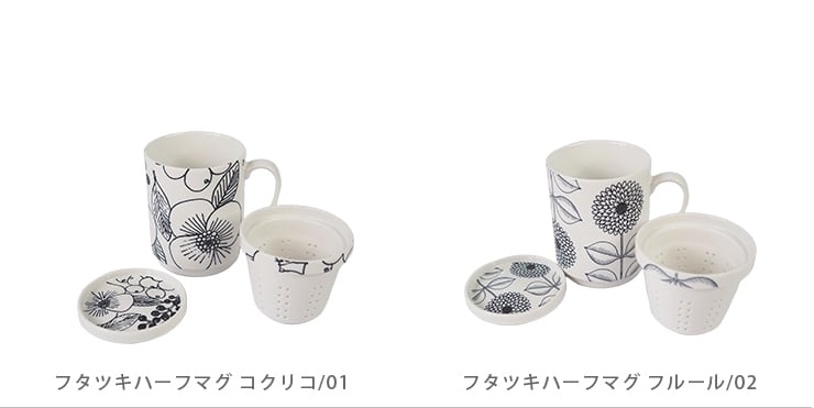 52090002 フタツキハーフマグ マグカップ 茶こし 蓋付き(日本製 おうちカフェ 食器 磁器 マグ ふた付き フタ付きカップ セット)